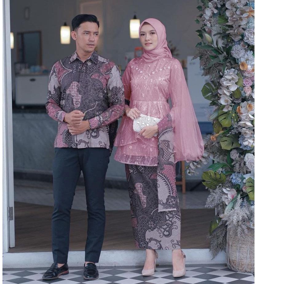 Beli couple baju kebaya batik tulle mutiara dusty pink lamaran tunangan wisuda terbaru di shopee.